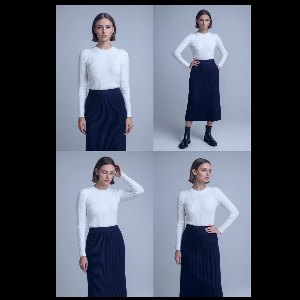 رنگ این دامن چیزی بین سرمه ای و دودی است